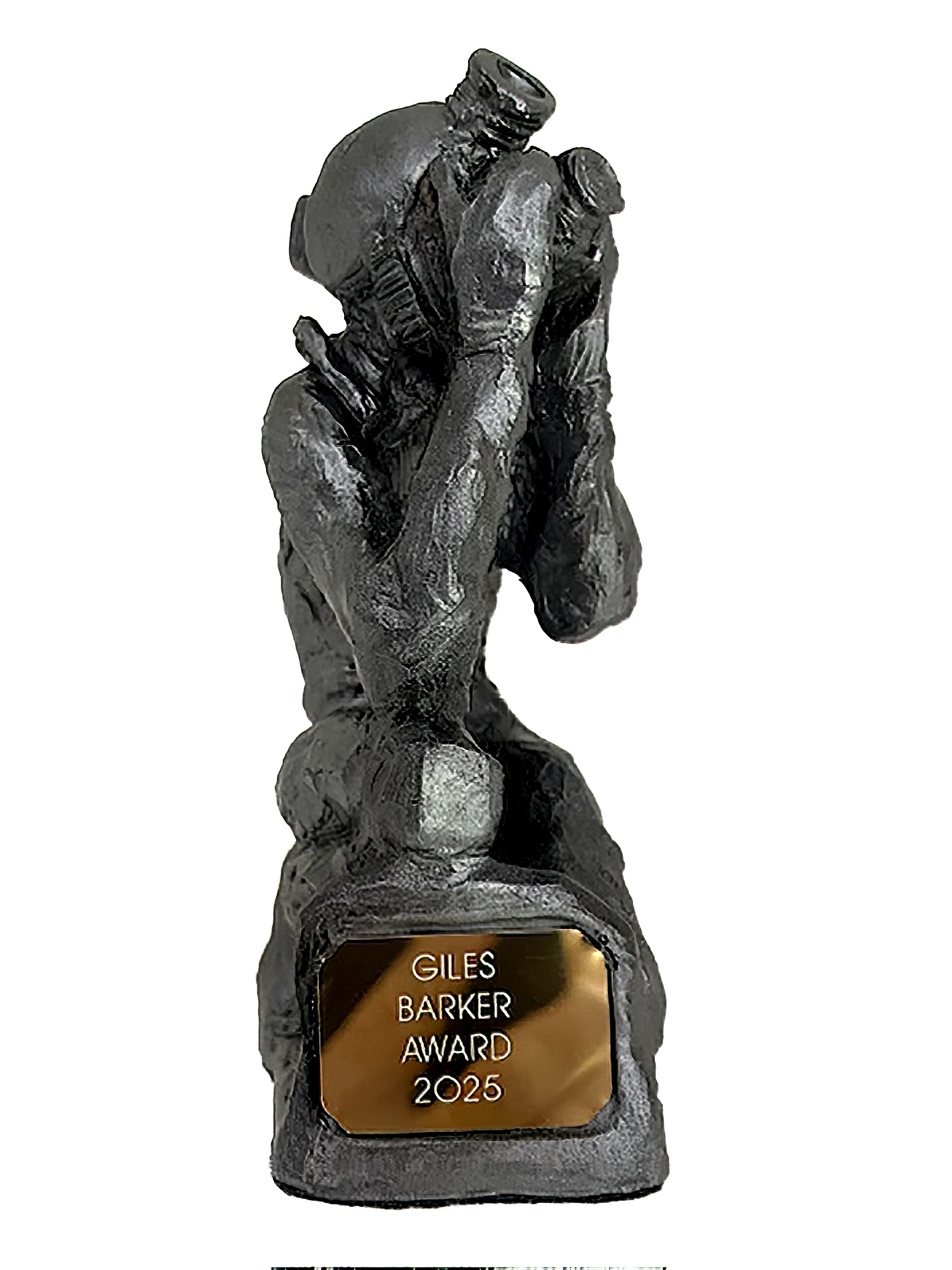 Congratulations to Peter Burgess for an honour achieved by his diligence and attention to detail in documenting what might otherwise be information lost to time. He receives a unique sculpture specially created by Ceris Jones, which he will retain in perpetuity.